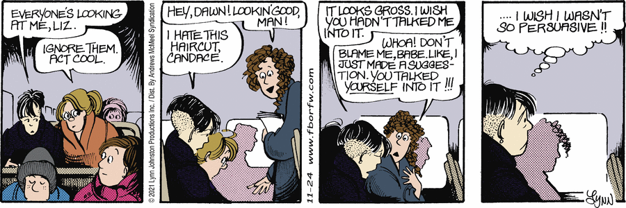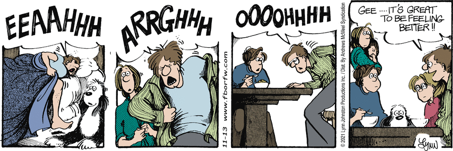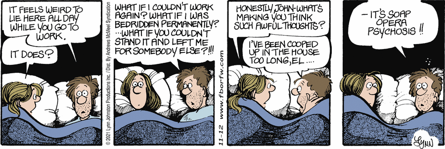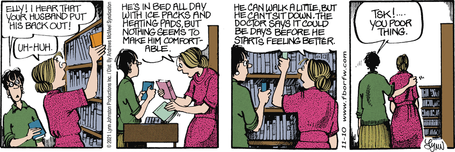 Lynn's Comments: In every panel here, I wanted to show Elly doing what moms do when they have a little one to care for. There is movement and action going on all the time. I have rarely done a strip where "talking head"” carry the gag forward. I wanted to show what real life is like.